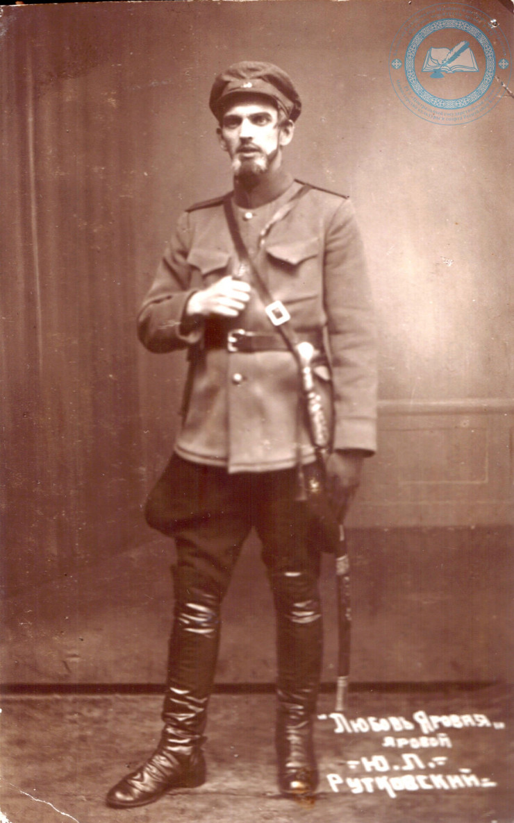 Ю.Л. Рутковский в роли Ярового в спектакле "Любовь Яровая" по пьесе К.А. Тренева. [1926-31] гг. ЦГА РК. Ф. 1712. Оп. 1. Д. 46.