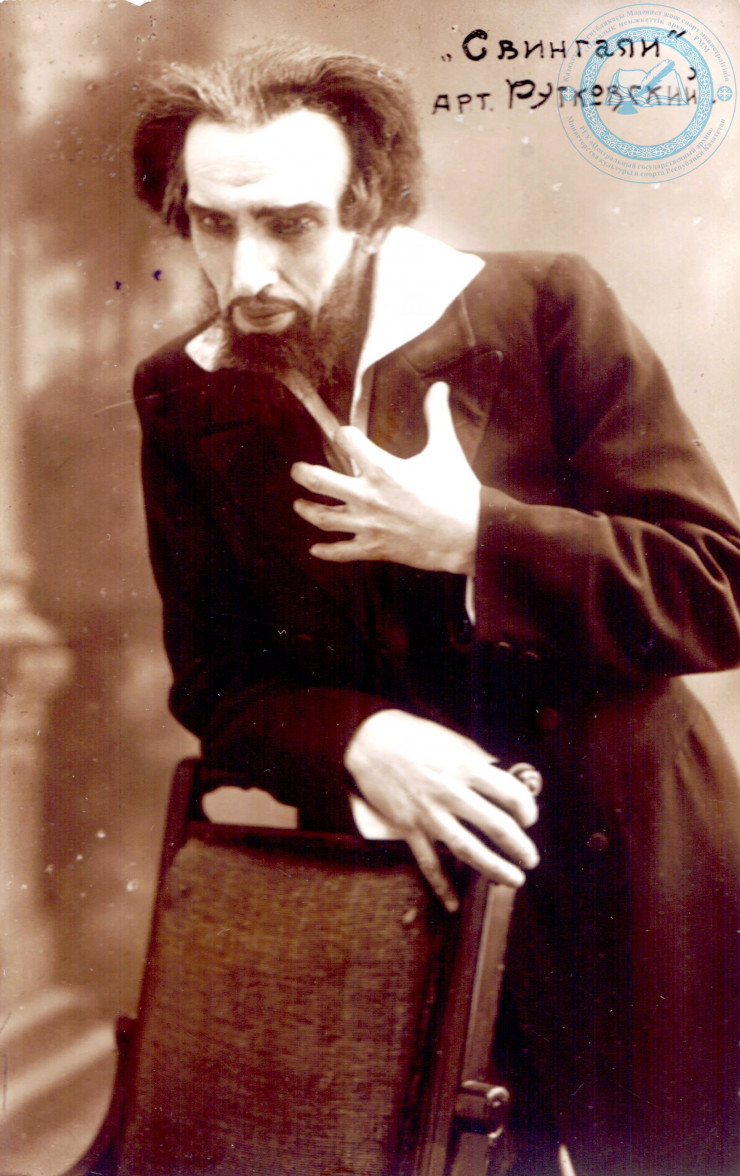 Ю.Л. Рутковский в роли Свингали в спектакле "Трильба". Бобруйск, 1925 г. ЦГА РК. Ф. 1712. Оп. 1. Д. 45.