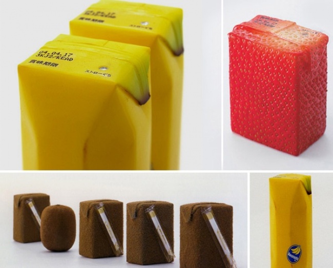 Японский дизайнер Наото Фукасава создал упаковку для соков, имитирующую кожицу фруктов. Все понятно без лишних надписей.