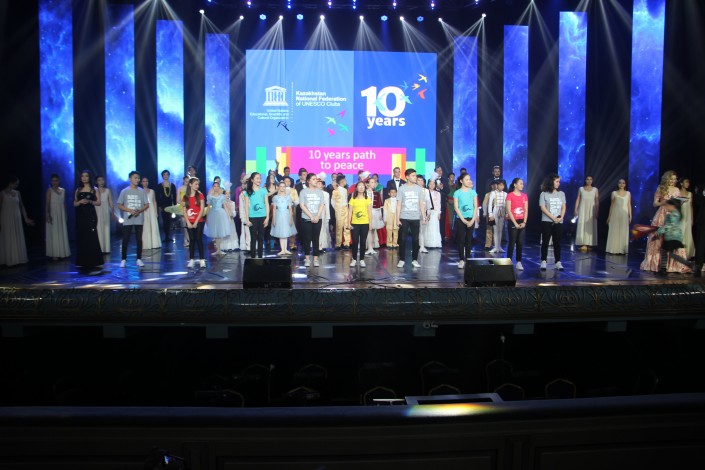 Концерт "10 лет на пути к миру", прошедший на сцене Государственного академического театра оперы и балета имени Абая (ГАТОБ) по случаю юбилея федерации, затронул сердца тысяч зрителей, соприкоснувшихся с глубокой философией и социальной значимостью деятельности клубов ЮНЕСКО Казахстана.