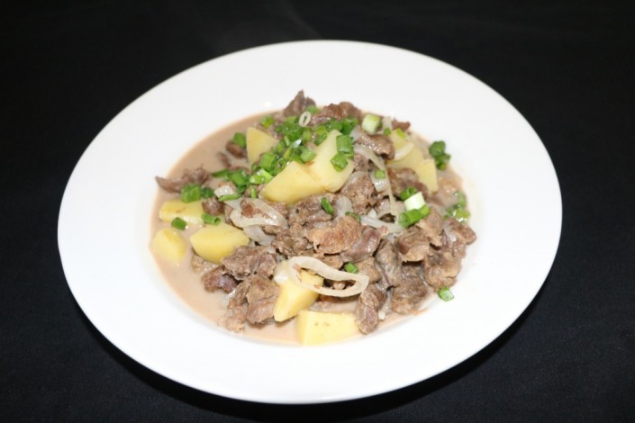 Это блюдо для особых гостей. Считается хорошей альтернативой обычному бешбармаку. Готовится из бараньего мяса в бараньем же желудке. Свое название берет от названия составных частей блюда: головы (бас) и желудка (карын). Мясо и предварительно отваренная голова закладываются в желудок и готовятся несколько часов на углях в собственном соку. Можно добавить лук, болгарский перец и картофель. Хватает такого бас-карына на 6 человек.