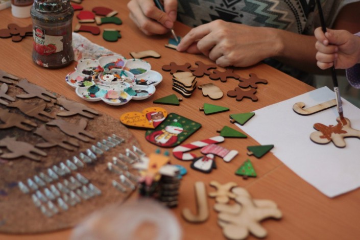 "Каждый сюжет просил развития. Мы брали новую доску - и вперед! Первая мысль расписывать дощечки пришла к нам в Киеве 7-8 лет назад, когда мы купили новогодние игрушки из дерева в маленькой лавочке на Бессарабской площади. Отсюда все и началось".