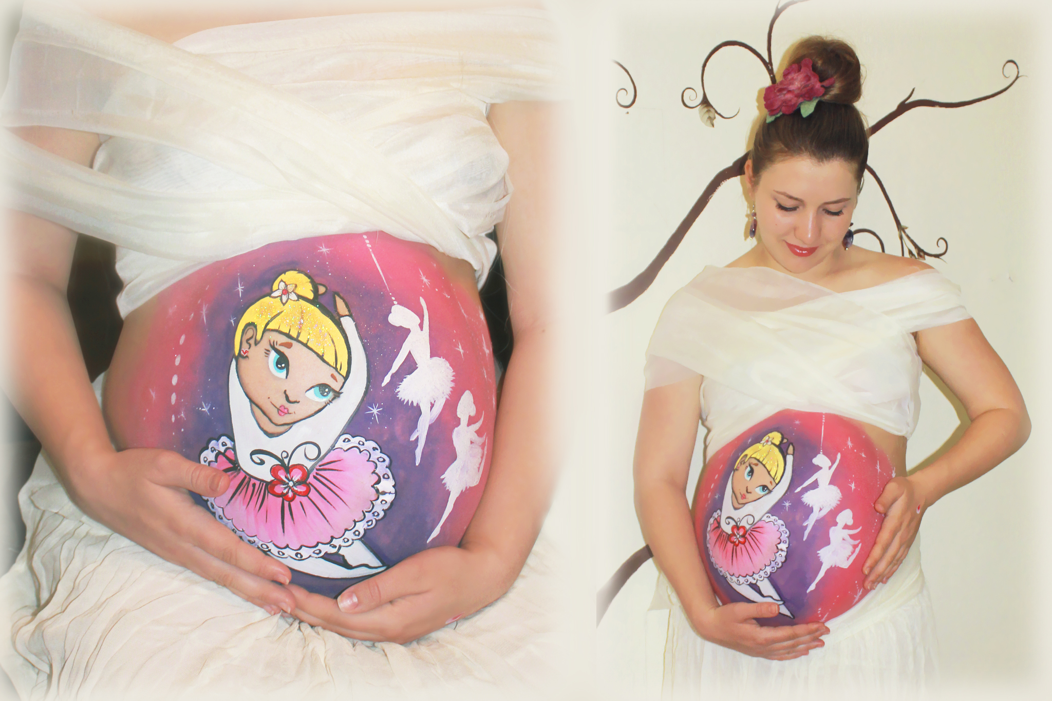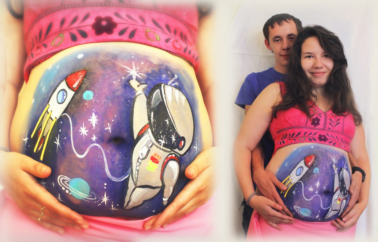 "Идея боди-арта на животах будущих мамочек пришла ко мне не случайно, а именно в тот самый период, когда я сама ждала свое маленькое чудо, - рассказывает Алена Дубовицкая. - Я искала красивый и интересный способ запомнить свою беременность, и, будучи дизайнером, недолго думая, приступила к росписи своего животика. Хотелось изобразить что-то нежное, значимое и, конечно же, позитивное, так и родилась тема боди-арта: "Кем же он станет?" Забавно то, что теперь у нас в доме бегает голубоглазая светловолосая девчушка, как и было изображено на пузике. Хотя изначально предпосылок для такой внешности было мало. Как это работает: то ли чувствуешь ребенка и рисуешь, то ли, наоборот, программируешь его на что-то? Волшебство, да и только!"