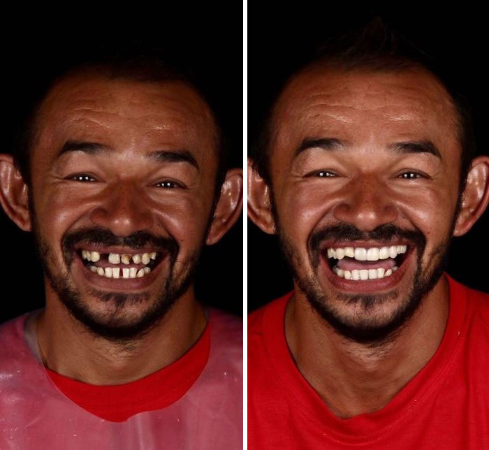 Фелипе Росси на своей странице в Instagram выкладывает вдохновляющие фотографии улыбок клиентов до лечения зубов и после. На них видно, как хорошеют его пациенты.