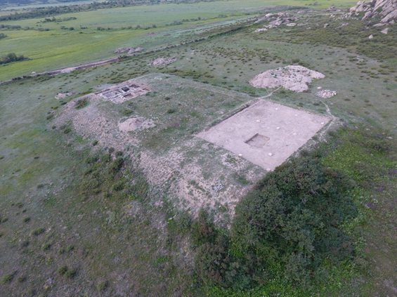 Самой мощной стеной огорожены полезная площадь под храм, жилые и хозяйственный комплекс. Последний до начала археологических работ представлял собой руины - ямы округлой формы глубиной до 1,5 метров, расположенные параллельно друг другу по линии с запада на восток. Ниже по склону находятся небольшой ров и вал - возможно, это остатки арыка для подачи воды в печи.