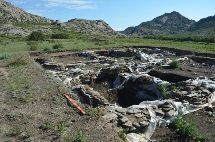 Делая раскопки, археологи обнаружили кое-что интересное. С внешней стороны ворот были найдены скопления костей животных: не менее четырех туш лошадей, западнее от них - кости нижних конечностей верблюда. С южной стороны в неглубокой западине полукольцом залегало большое скопление костей лошадей, крупного и мелкого рогатого скота. К юго-востоку от ворот нашли нижние конечности и кисти рук человека, расположенные в анатомическом порядке. Судя по ним, умерший лежал, вытянувшись на спине, головой на северо-запад. В области его левого предплечья было каменное пряслице (грузик в форме диска для утяжеления ручного веретена и крепления пряжи на нем), а в районе ребер - два фрагмента металлических предметов.