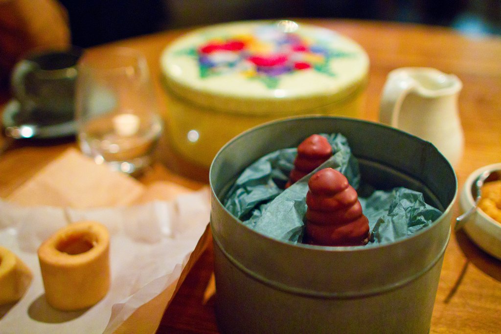 "Gammel Dansk" - горький местный ликер, который подается с огурцом, белым шоколадом и сельдереем.