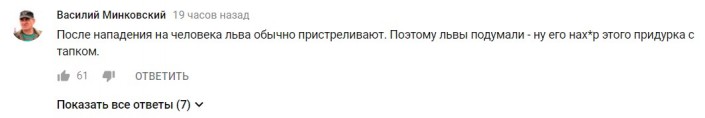 "После нападения на человека льва обычно пристреливают. Поэтому львы подумали - ну его нах*р этого придурка с тапком".