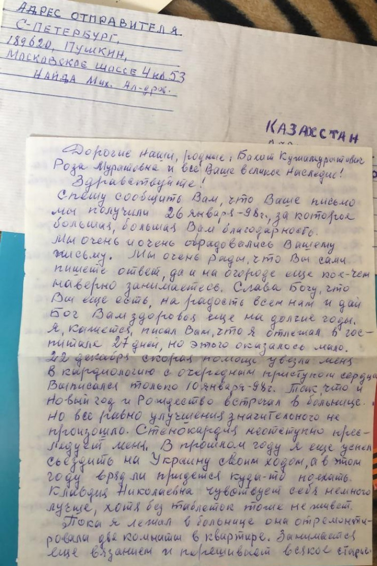 Одно из писем Михаила Найды Бакыту Ермухамедову. Фото из семейного архива.