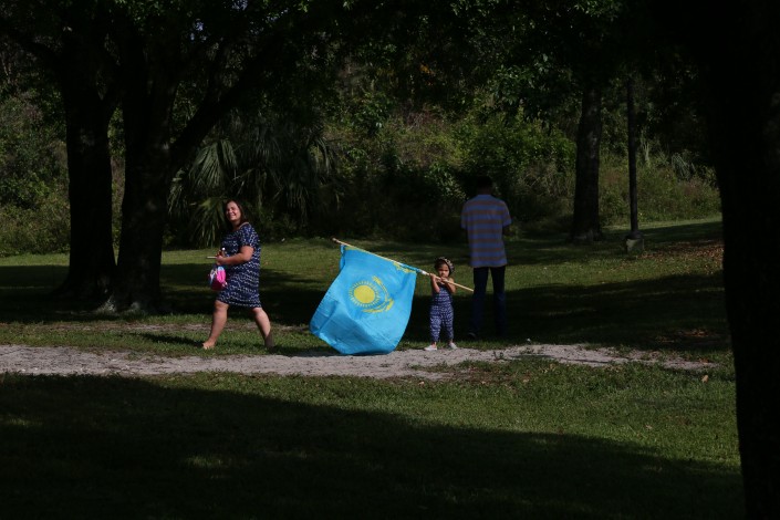 "Побывали мы и на праздновании Наурыза. В спокойном парке Butterfly World собралось несколько десятков человек. Казы, беш, чай, дастархан - все, как у нас. На черном GX на переднем номере вижу флаг США и читаю KAZAX. Это нормально. Во Флориде необязательно иметь на переднем бампере госномер, поэтому тут просто огромное поле для творчества. Вешай, что хочешь! Наши и вешают. И не только наши. Ну, какой латинос откажет себе в возможности заказать табличку со словом AMIGO?"