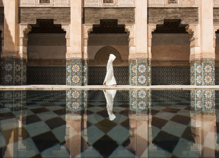 А этот загадочный кадр, автором которого является японский фотограф Такаши Накагава (Takashi Nakagawa), занял 1-е место на конкурсе в категории "Города". Путешествуя по городу Марракеш в Марокко, фотограф решил запечатлеть зеркальное отражение медресе на водной глади бассейна.