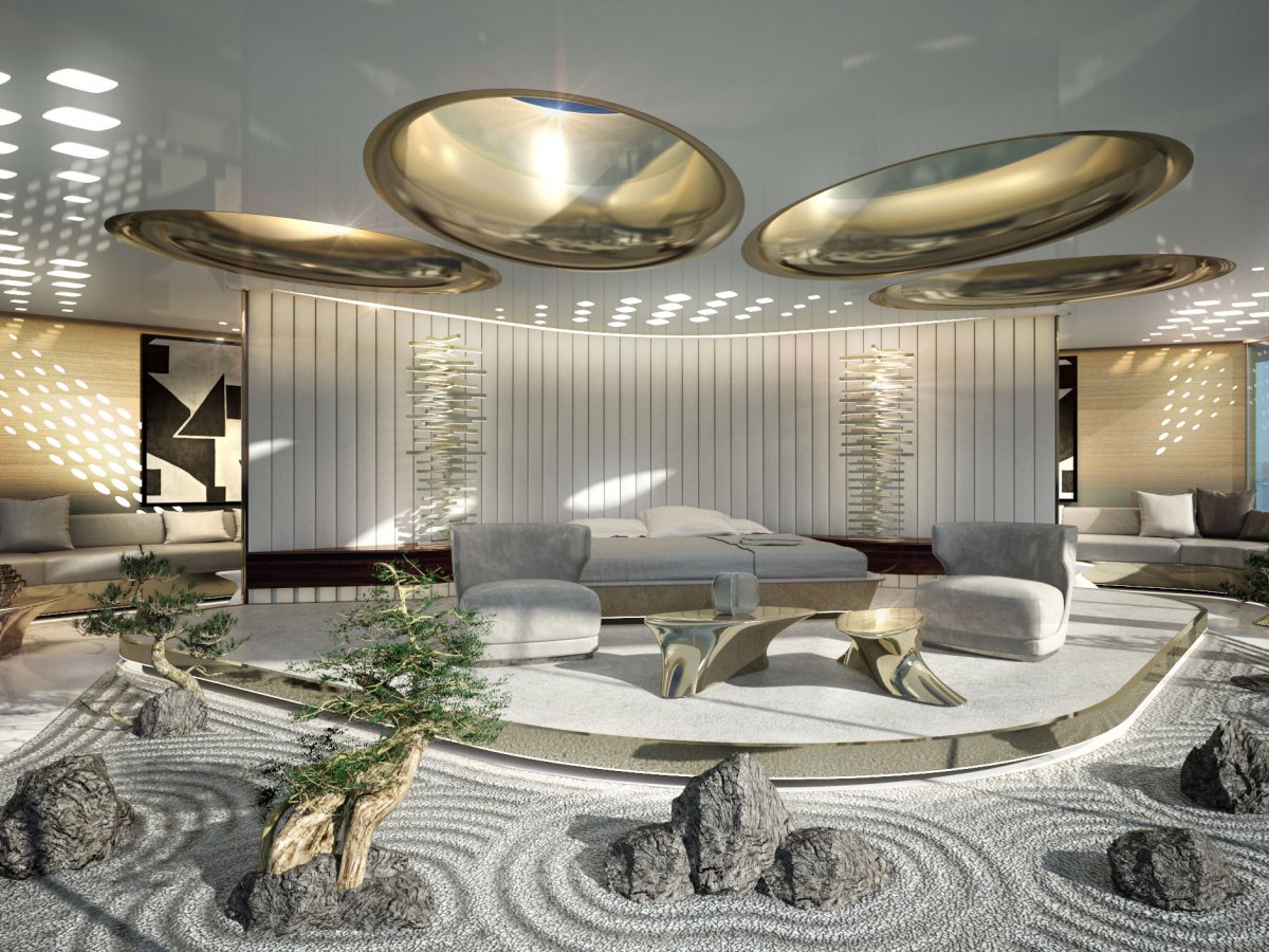 Окруженная дзен-садом каюта класса люкс, несомненно, является местом крайнего спокойствия и умиротворения.