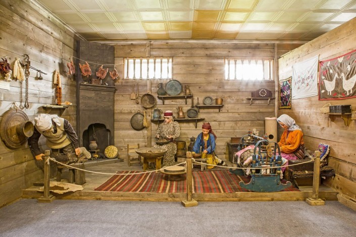 Предметы и сцены, отражающие быт и традиции региона, представлены более чем в 15 тематических пространствах. Здесь все находится в динамике: ювелир творит из металла и камня, столяр работает по дереву, ткачиха - с шерстью.