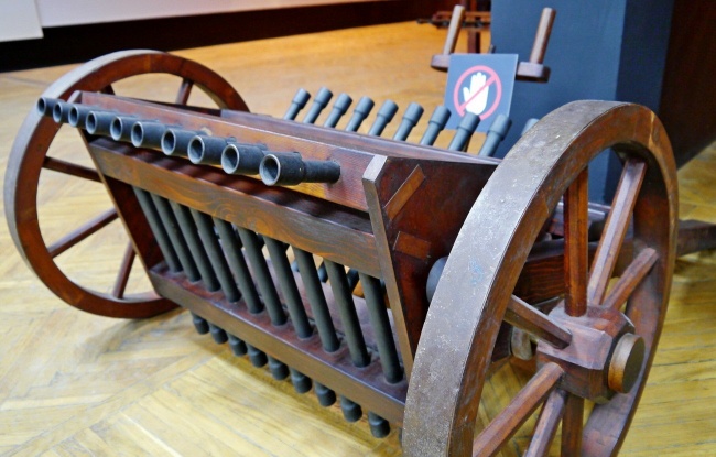 Леонардо активно рекламировал свои военно-технические идеи. Одна из них раскрывала суть пулемета. Он не мог быстро выпускать пули из одного ствола. Но зато мог выдавать залпы через короткие промежутки, и если бы был построен, эффективно бы косил наступающую пехоту.