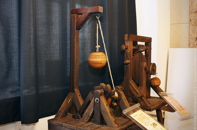 Леонардо придумал множество мелочей, которые были очень полезны. Потом он их же применял в своих механизмах. Храповик - это блокирующее устройство, которое не дает валу вращаться в обратном направлении.