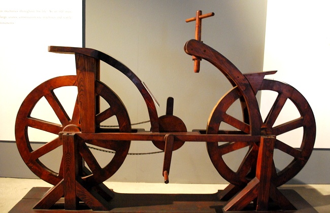 Первые технические чертежи велосипеда принадлежат Леонардо да Винчи. Майнингенская хроника 1447 года повествует о перемещающемся устройстве, приводимым в движение водителем.