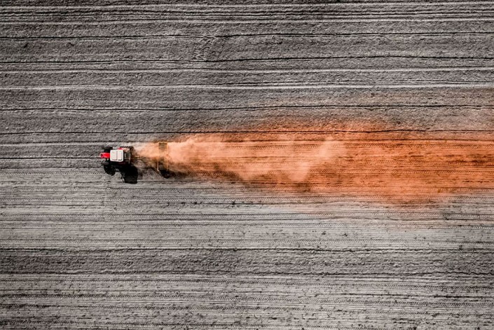 Фермер ранней весной готовит поле, Онтарио.