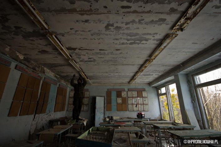 В операционном зале припятской больницы туристы включили не только флуоресценты, но и бактерицидную лампу, которая "давала изумительный эффект, учитывая что последний раз ее включали в апреле 1986 года".