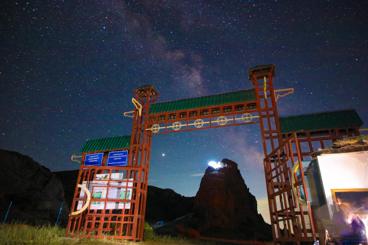 "Есть специальные карты засветки, если взглянуть на них, то за 300-400 километров от Алматы можно найти идеально темное небо. В таком месте я сделал эти снимки, хорошо виден Млечный Путь и мельчайшие звезды", - отметил фотограф.
