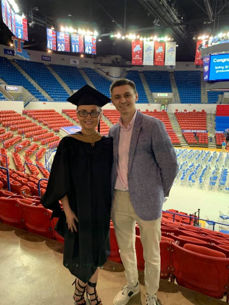 "Мы выпускники Карагандинского политехнического университета. Я училась на метрологию, стандартизацию и сертификацию, а Константин - на инженера машиностроения. Окончил как бакалавриат, так и магистратуру. В политехе, по программе студенческого обмена, ему предложили поехать в Луизианский технический университет. И в 2010 году мы переехали в США, он поступил в докторантуру по своей специальности, а я в магистратуру учиться как управлять инженерами и техническими специалистами.