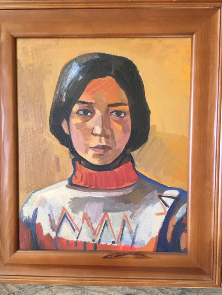 Портрет Медины Мукатовой. Старшая дочь Табылды, которая пошла по стопам отца и связала свою жизнь с кистью и холстами