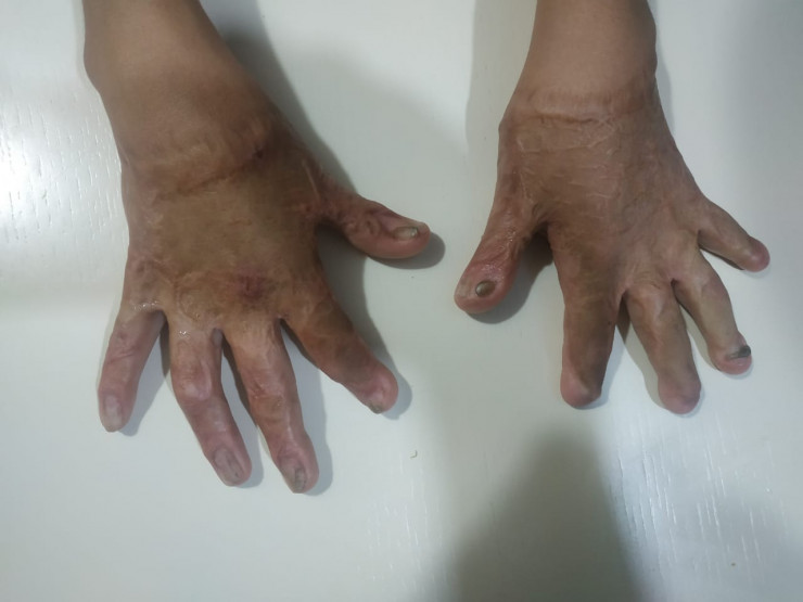 "Раны сына заживали очень медленно и плохо. Они превратились в жуткие шрамы. Операции в стране не облегчили боль моего ребенка. От того, что он растет, ситуация усугубляется, кожа стягивается. Он не может сжать кулак. Пальцы выглядят, будто ампутированы или укорочены. Ногтей нет. А лицо вовсе наводит на людей ужас", - говорит мама Абдурахмана.