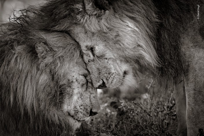Эти два взрослых льва, вероятно, братья. Они приветствовали друг друга, потираясь мордами примерно полминуты.