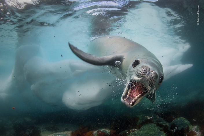 Спонтанная встреча с тюленем-крабоедом у острова Кувервилль, Антарктический полуостров.