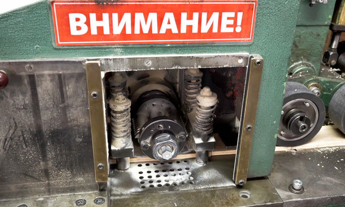 Полученный из бревна брус распиливают на короткие отрезки, каждый из которых затем распускают на десять дощечек. Чтобы все дощечки были одинаковыми, их нужно откалибровать. Для этого их прогоняют через специальный станок. На выходе из него дощечки имеют одинаковый размер и строго перпендикулярные грани.
