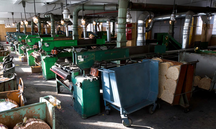 Отсортированные карандаши на специальном лифте поднимаются на следующий этаж, где их будут красить.