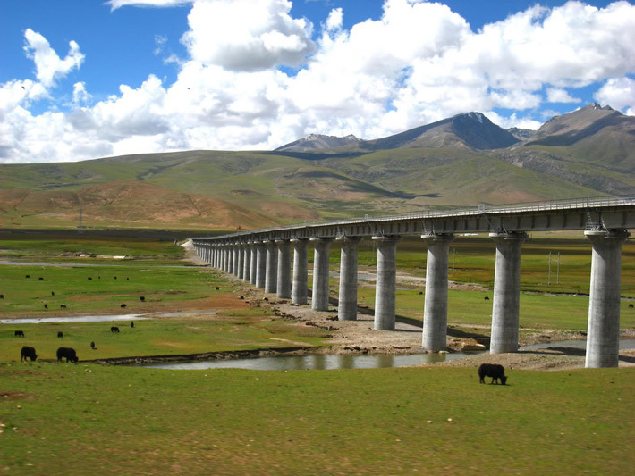 Помимо технической составляющей, важным достоинством эстакадных участков является тот факт, что они не препятствуют свободному перемещению под магистралью уникальных порой представителей местной фауны. Негативный эффект от инородного включения в тибетскую экосистему сведен, таким образом, до минимума.