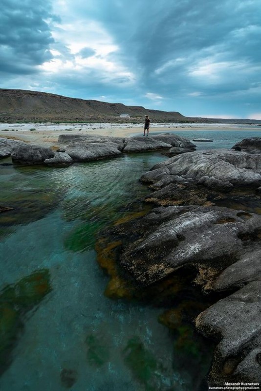 Смотреть на море и небо можно бесконечно - волны, набирающие высоту, и облака, окрашенные солнцем, сливающиеся воедино. Предлагаем вам взглянуть на жемчужину Казахстана - Голубую бухту и насладиться прекрасной панорамой и атмосферой снимков Александра Колесникова.