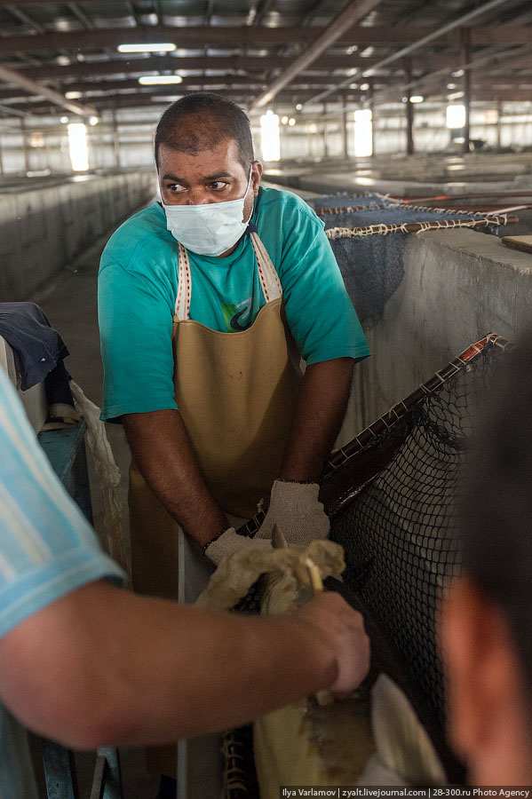 Небольшая справка про самого Юрия Киташина. Он бывший военный, 20 лет отслужил в советской армии и в начале 90-х, когда все у нас развалилось, уехал сначала в Сирию, потом в Саудовскую Аравию. В России было много попыток открыть аналогичную ферму, но его все либо обманывали, либо "посылали". Инвестировал в строительство фермы местный шейх, так что золотых гор на этом деле Юрий не зарабатывает. Вообще окупаемость такого дела лет 10.