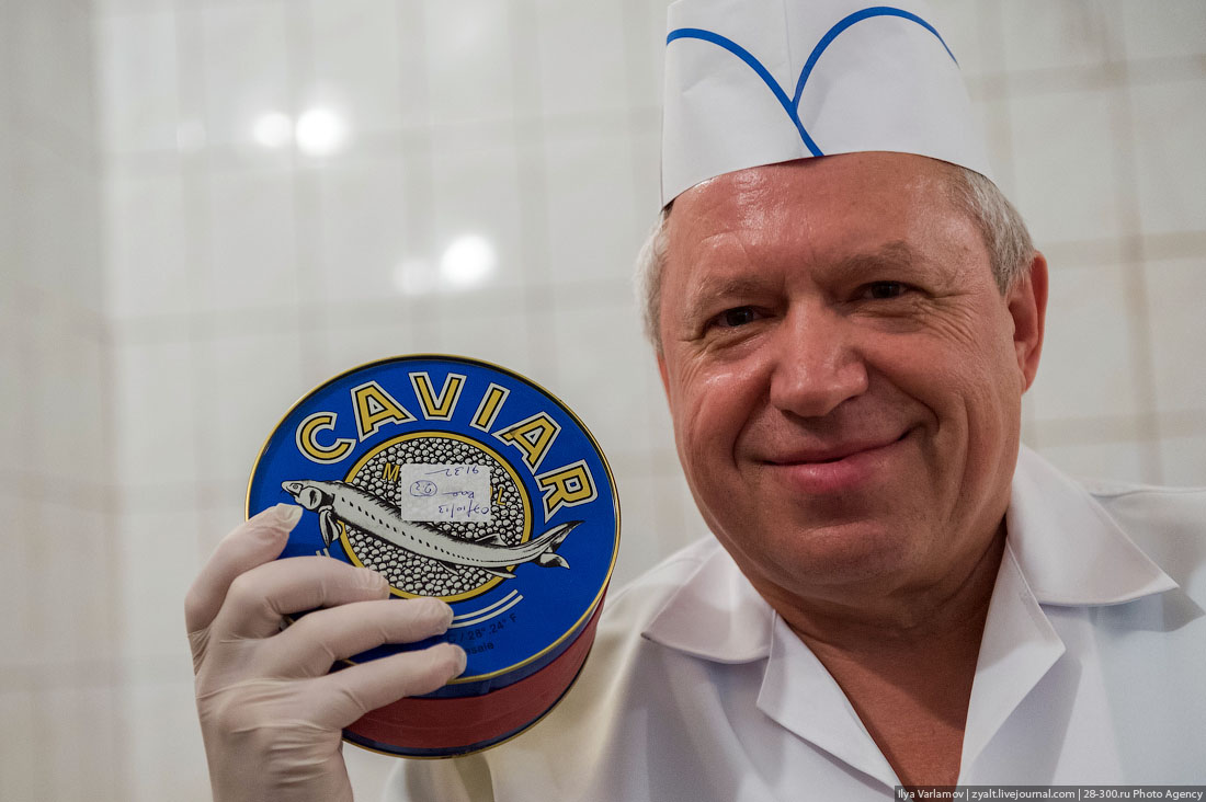 Это все техническая упаковка. Потом из этих банок икру достают и расфасовывают уже в баночки для магазинов.