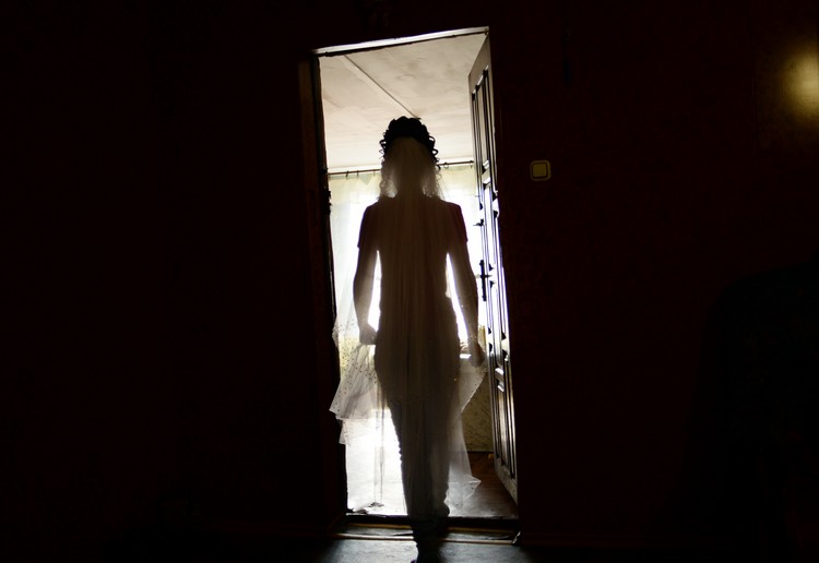 Невеста на цыганской свадьбе в таборе в городе Чудово (Новгородская область).