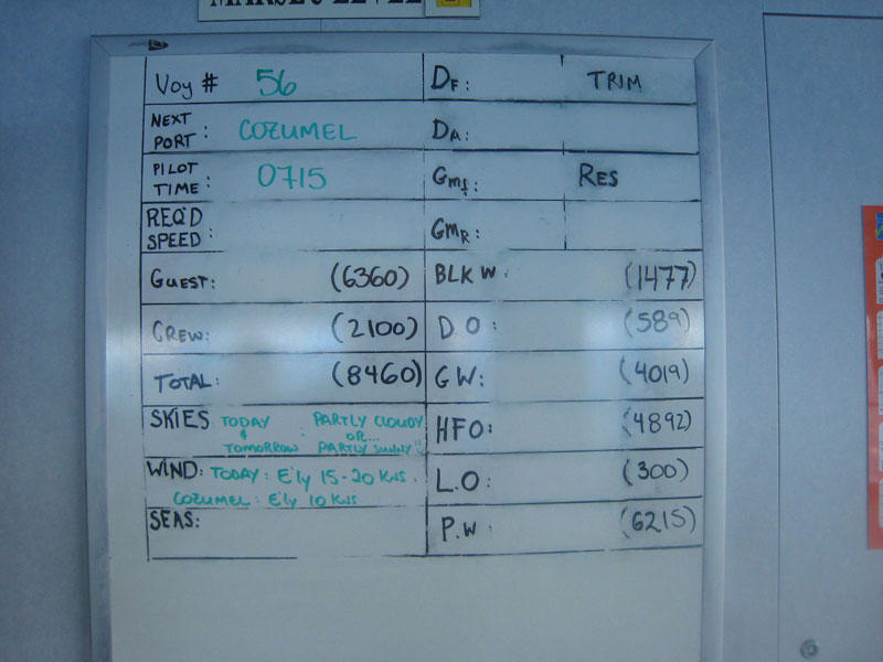 - 2706 кают, 6318 человек гостей, 2384 человек персонала (из 80 стран)