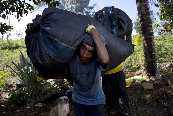 Эдгар Эскаланте несет на плечах мешок с листьями коки на весовую станцию в Самугари, Перу. Собиратели коки зарабатывают около 33 центов за килограмм листьев. В итоге получается около 16 долларов в день.