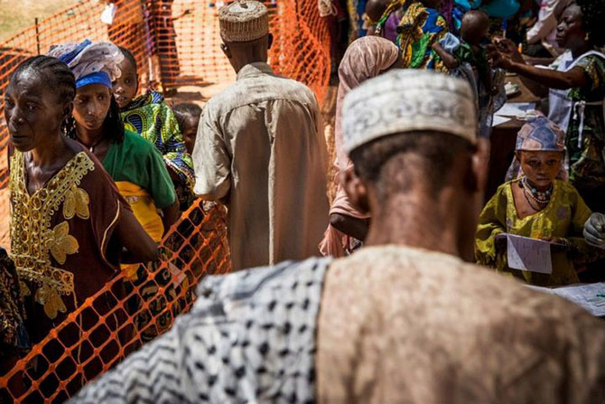 Мусульмане стоят в очереди возле мобильной клиники в анклаве PK12, недалеко от Банги.