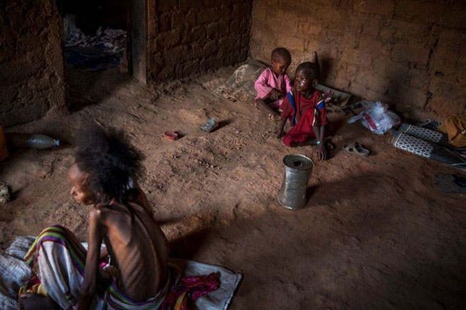 Женщина фула в возрасте около 40 лет находится в мусульманском анклаве PK12, недалеко от Банги, 9 апреля 2014 года. Она очень больна. У нее подозревают туберкулез и, возможно, еще несколько заболеваний.