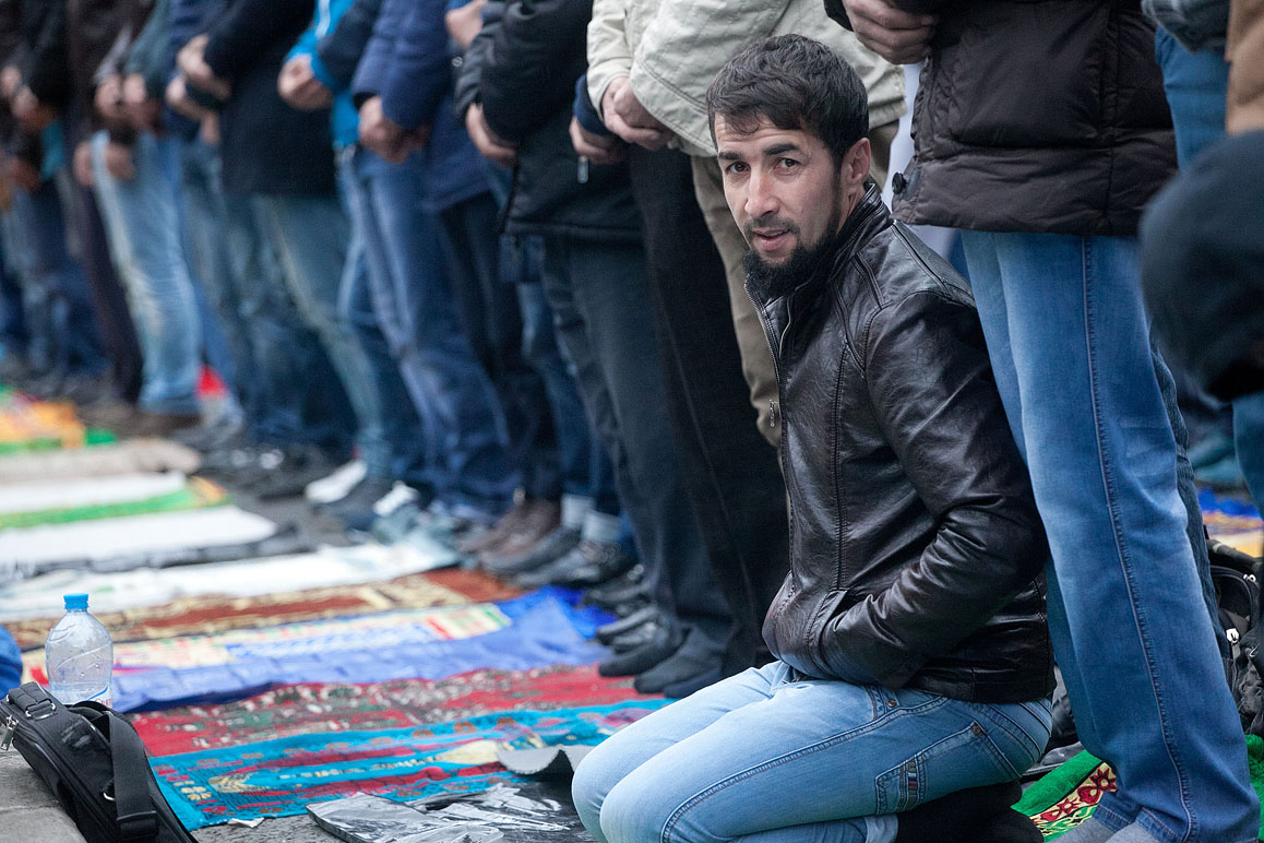 В Москве мусульманский праздник собрал около 130 тысяч человек. Молитвы состоялись в пяти действующих мечетях и на трех дополнительных площадках, выделенных мэрией. Больше всего людей пришли к Соборной мечети - примерно 50 тысяч человек. О том, как это было, - в фоторепортаже Bigpicture.ru