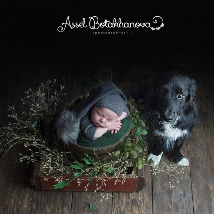 А следующий кадр вошел в 100 лучших фотографий мира с новорожденными. Здесь основную роль сыграл пес - верный друг и охранник человека.
