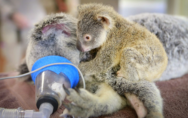 У врачей были серьезные опасения по поводу здоровья взрослой коалы, но шестимесячный малыш поддерживал ее и не выпускал из объятий даже во время операции, возможно, именно это дало поддержку Лиззи и мотивацию врачам.