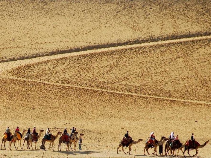 Караван мансы Мусы простирался за горизонт. Летописцы описывают десятки тысяч солдат, гражданских лиц и рабов, а также множество верблюдов и лошадей, перевозящих огромное количество золотых слитков. Сопровождали короля, по разным источникам, от 60 до 80 тысяч человек свиты.