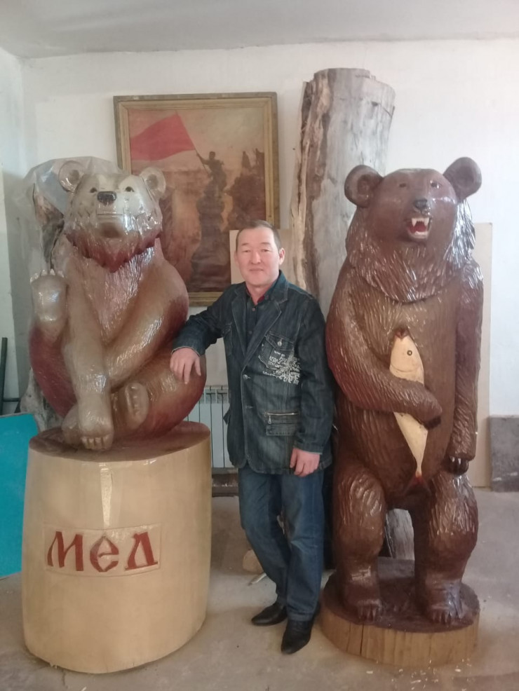 Скромный трудовик также является автором пяти крупных деревянных фигур медведей, установленных в центральном парке Риддера.