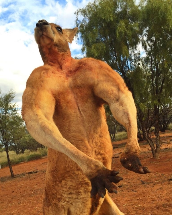 Отметим, что в дикой природе также встречаются мощные самцы кенгуру с огромными бицепсами, но редко. И, как правило, человека они все-таки боятся. Что ж, наверное, у привыкшего к людям Монти так проявляется подростковый возраст, юношеский бунт, так сказать.