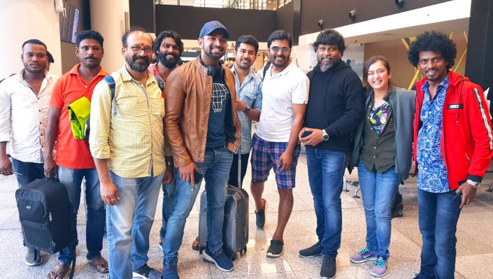 Арун Виджай, Навин Мохаммед Али, Акшара Хасан (в центре) и съемочная группа. Фото Twitter/ @ArunVijay