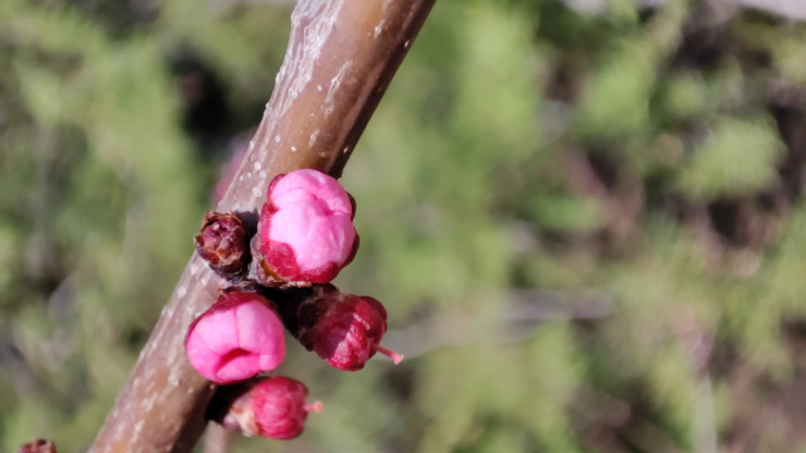 "Это самые первые цветочки, видно, что только начали распускаться, а некоторые еще закрыты. В этом году на неделю позже началось цветение урюка в сравнении с прошлой весной. В прошлом году я делал подобные фото 27 марта в этом же месте", - добавил Дмитрий.