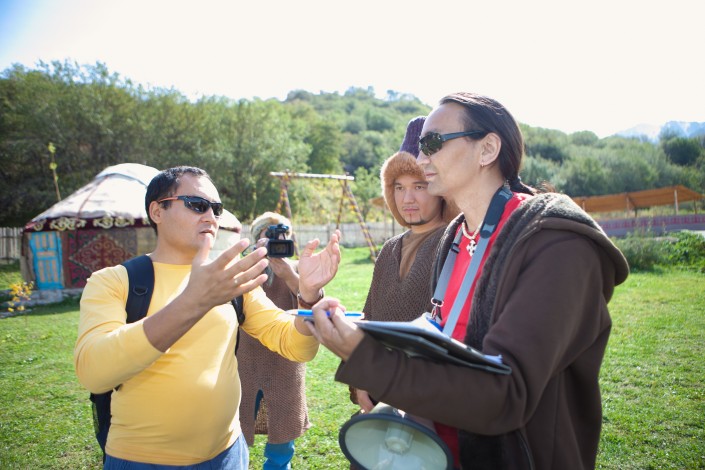 На съемках социального ролика "Конь - крылья джигита", Алматинская область