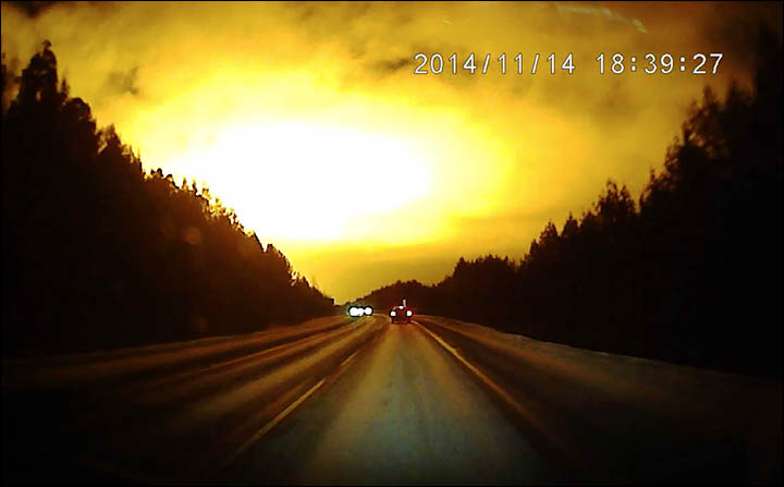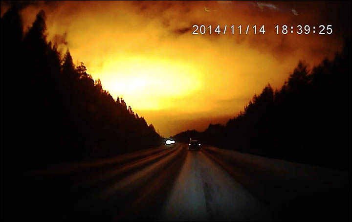 Вот, что написал автор ролика Вячеслав Булатов в пояснении к видео: "В пятницу (14.11.2014) я наблюдал вспышку в небе на дороге по пути в Режов. В новостях об этом ничего не нашел. Кто-нибудь еще видел это? Что это было?"