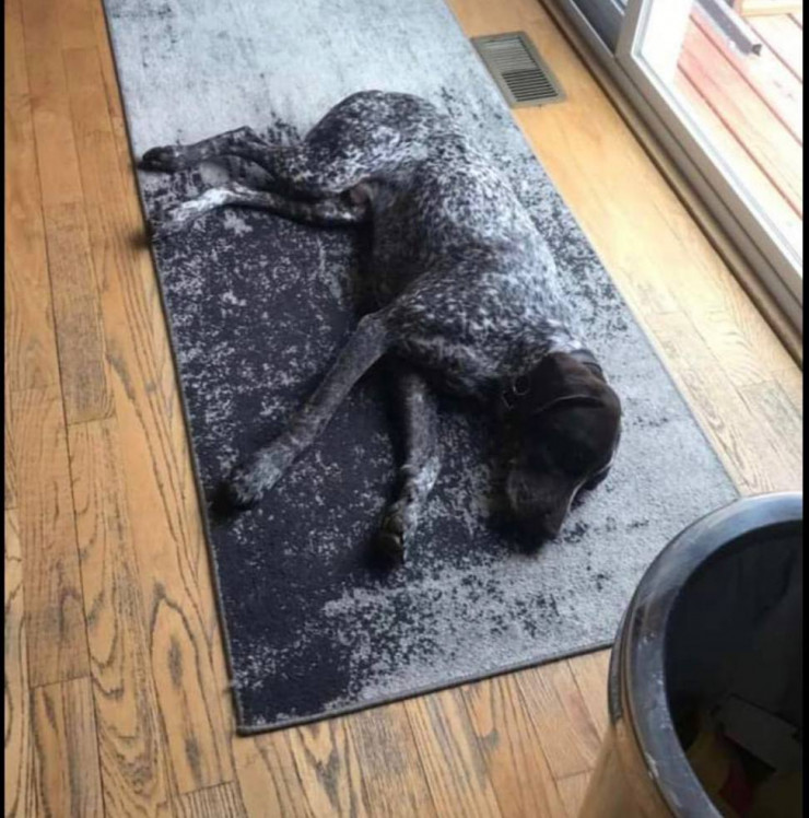 "Декстер слишком хорошо сливается с ковром", — написала она в посте с фотографией своего пса.